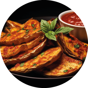 - Thoroughly wash potatoes, cut in half, and slice into wedges.